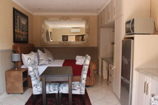 Each room offers a variety of luxurious elements which include king-size bed, beautiful en-suite bathroom, consisting of a large shower, spa bath, double basins and jacuzzi. A flat-screen TV and DSTV bouquet, Netflix, Amazon, free WIFI, hairdryer, custom toiletries, hot and cold air-conditioning, iron and ironing board, underfloor heating, built-in digital safes, kitchnette and dining room table. Each room has extra security with trelli doors and panic buttons.